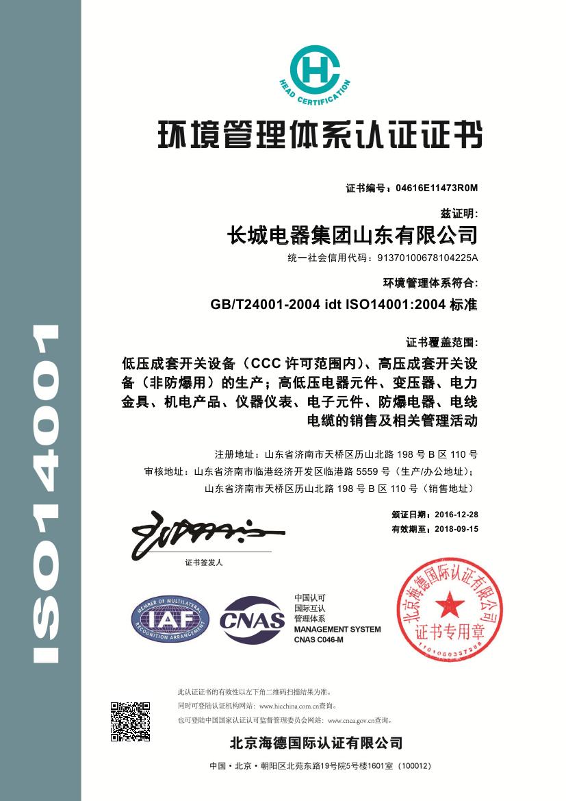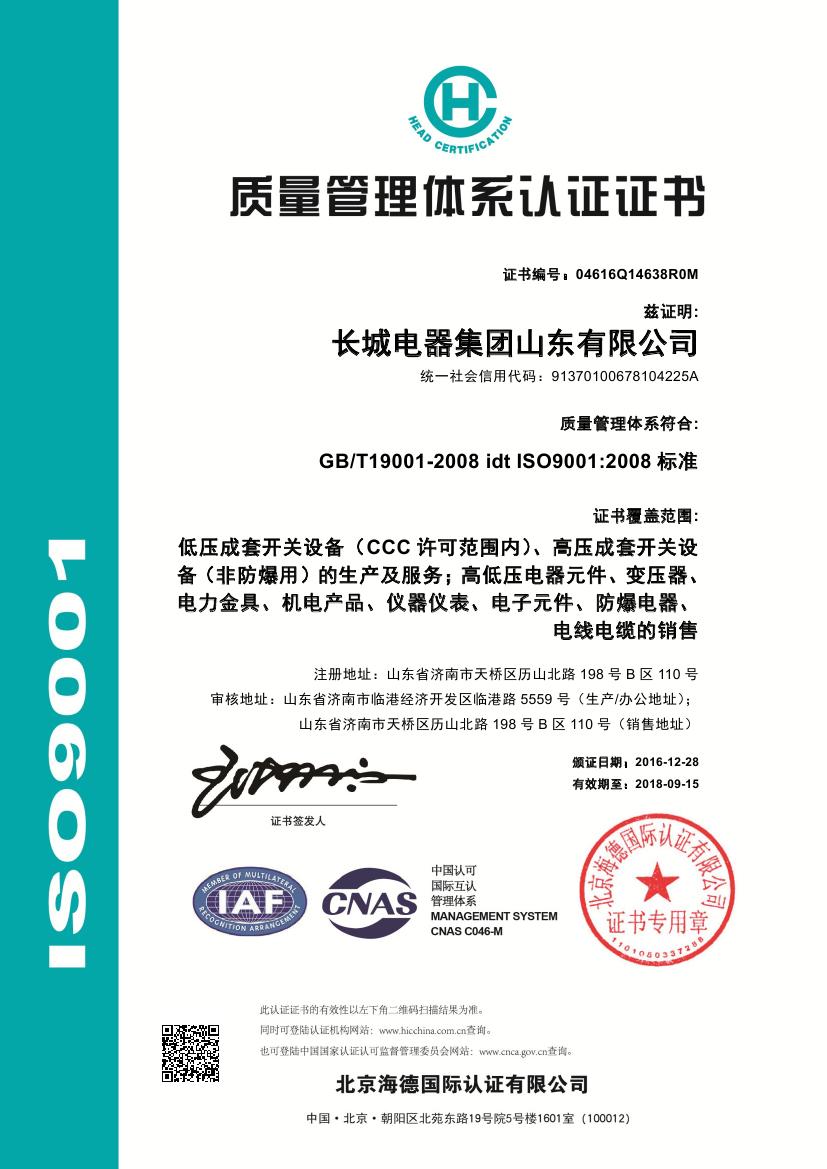 - 熱烈慶?!伴L城電器集團(tuán)山東有限公司”榮獲“ISO9001質(zhì)量管理體系證書[2017-01-04]